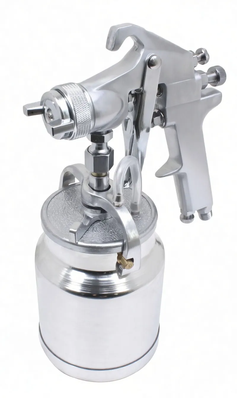 Professional gravity-feed spray gun for high-viscosity coatings, water-based paints, and industrial finishing applications.