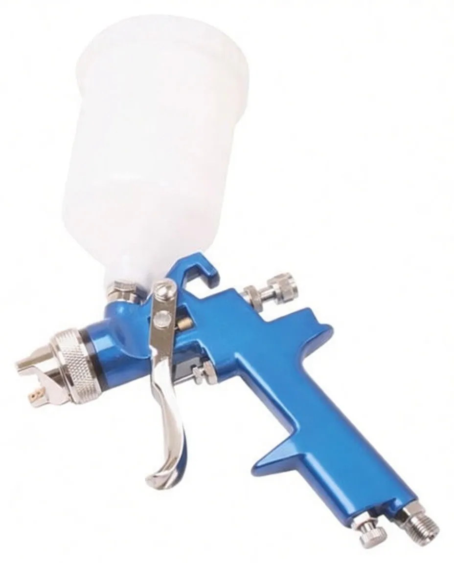 Efficient low-pressure gravity-feed spray gun for fine atomization with minimal air consumption—ideal for detailed painting and water-based coatings.