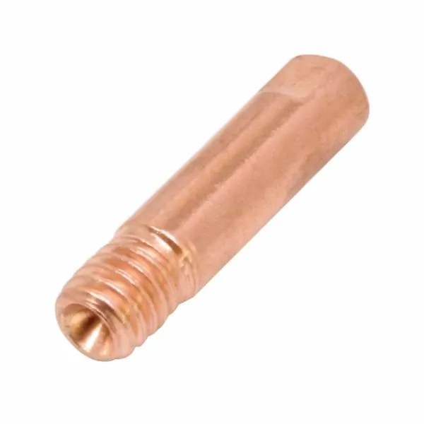 Precision-machined copper contact tip for 0.8mm MIG wire, M6 thread connection, reliable current transfer for consistent welding performance.