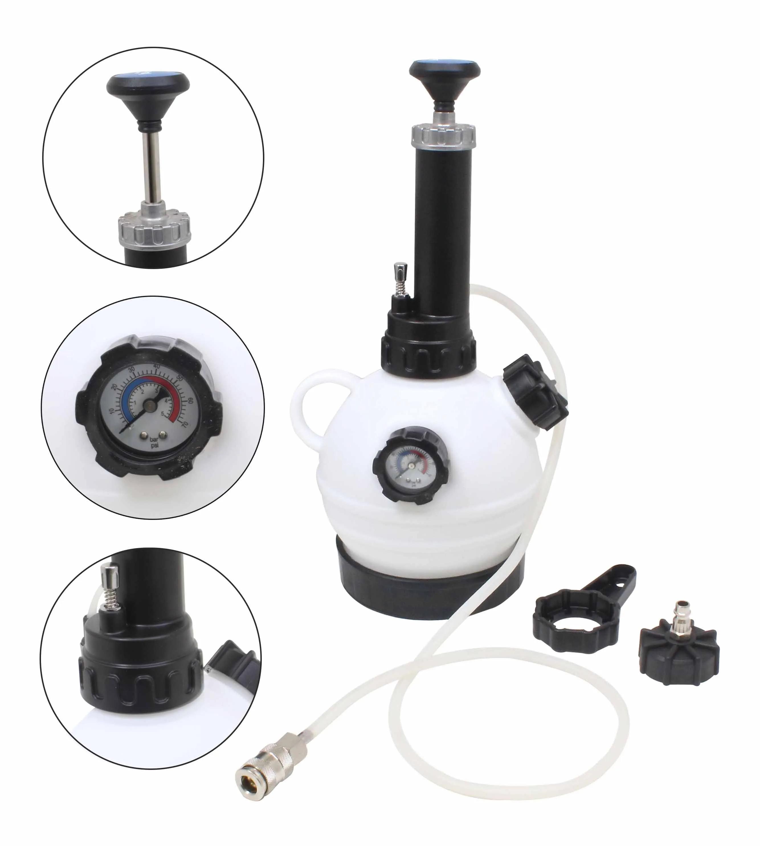 2L Manual Pressure Brake Fluid Bleeder with Integrated Gauge and Quick-Connect Coupling