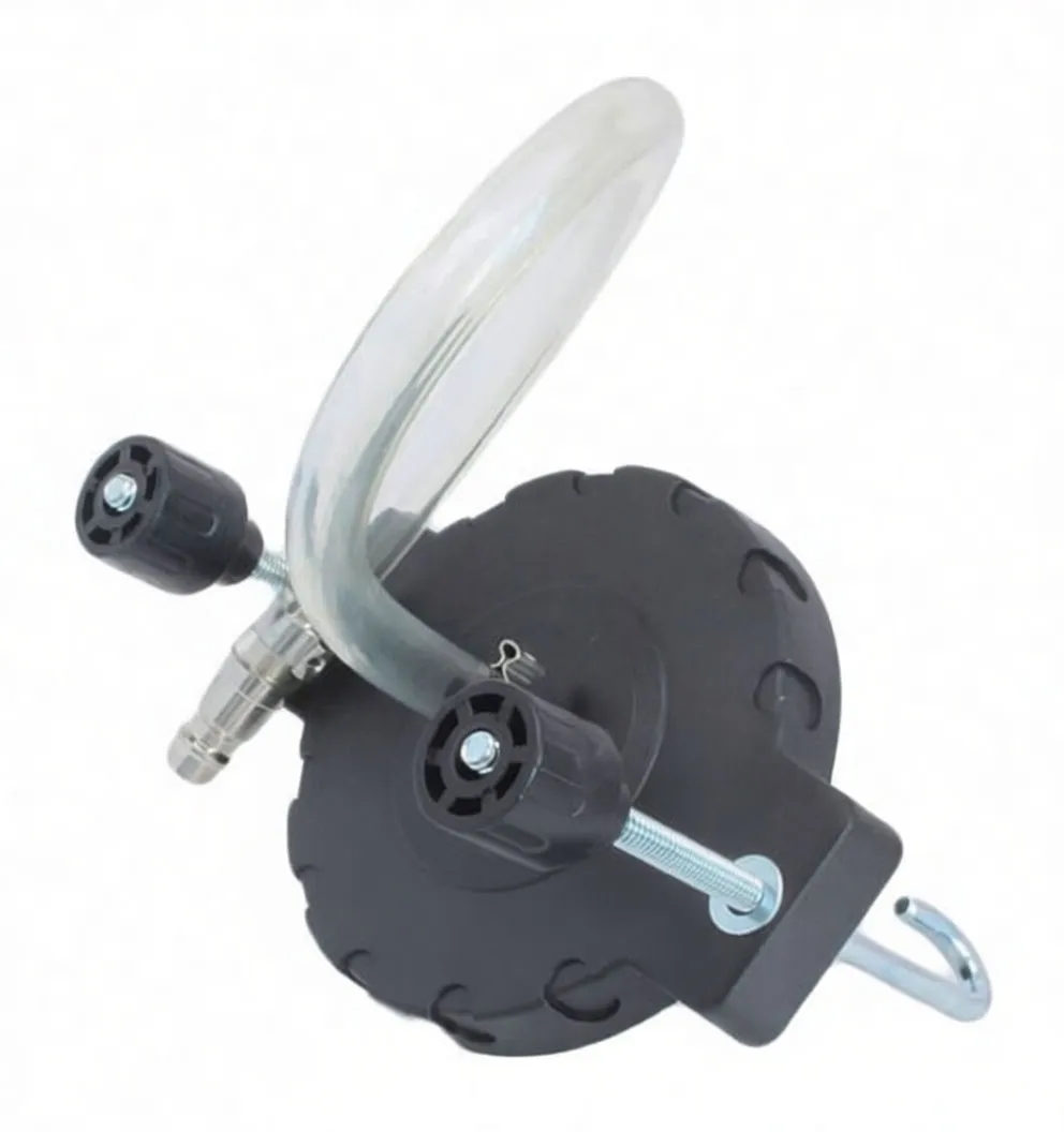 Professional-grade universal adapter for brake and clutch bleeding systems, fits reservoir caps up to 91mm diameter.