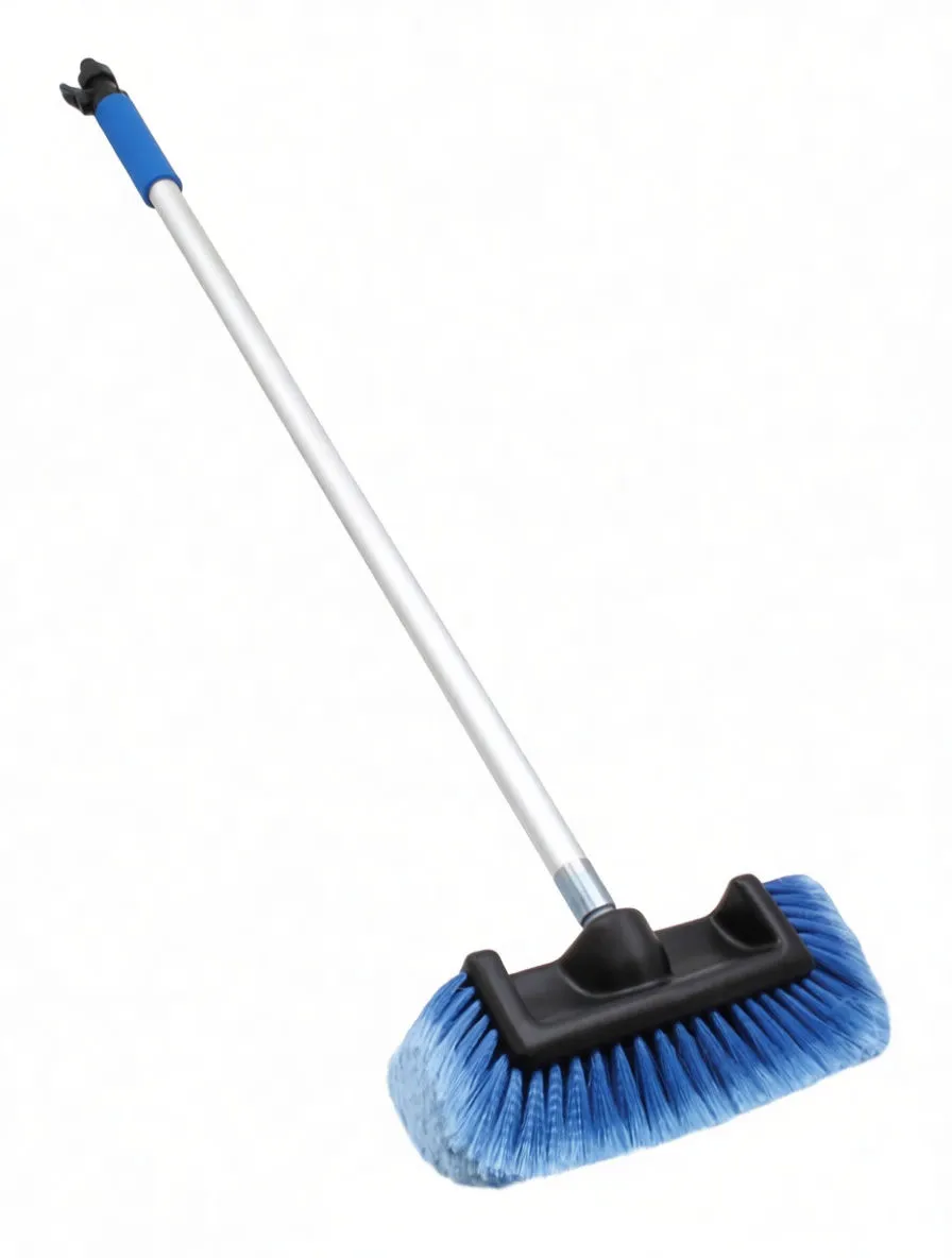 Professional telescoping wash brush with interchangeable heads, water-flow control, and adjustable length up to 145 cm for fleet and facility cleaning.