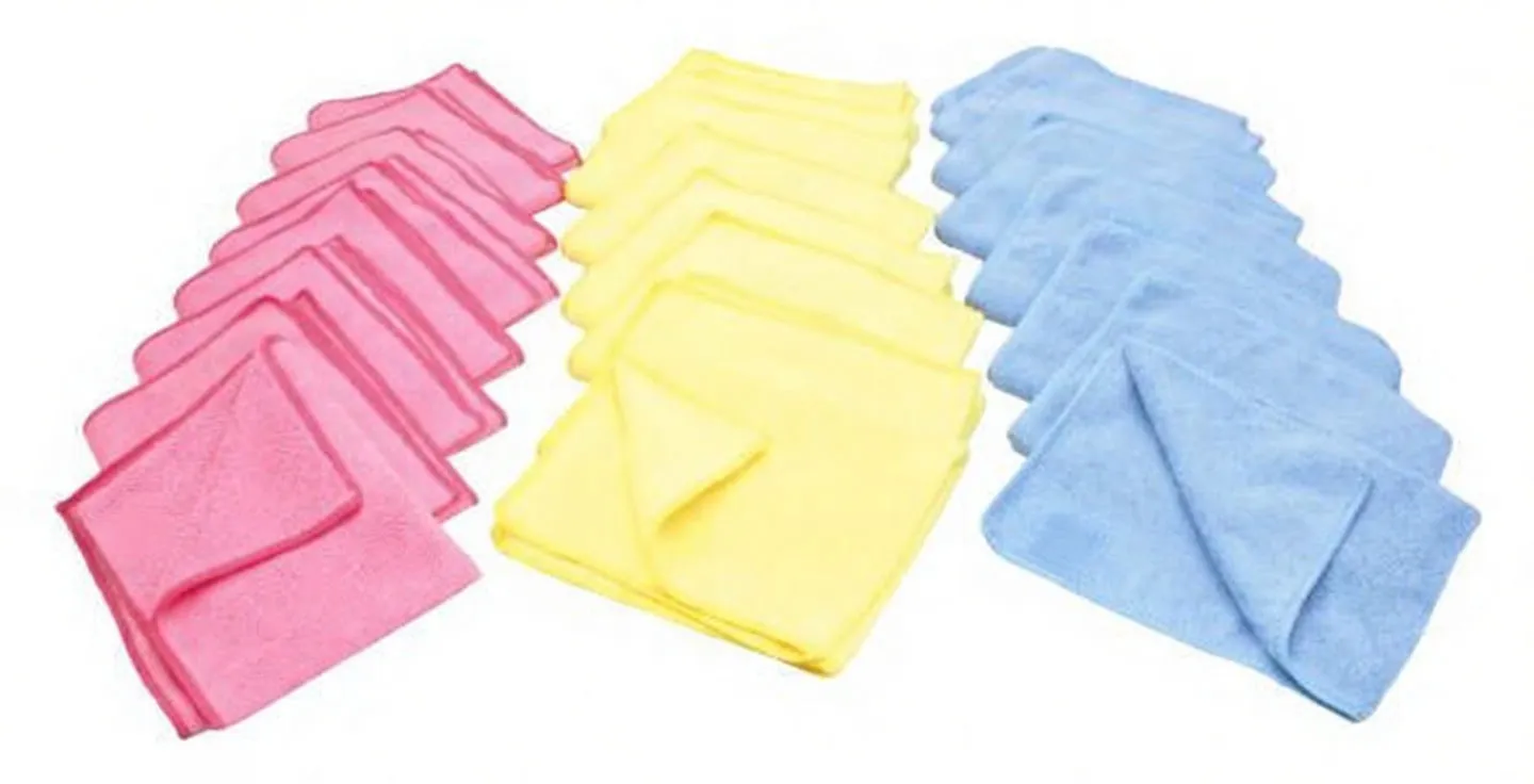 Professional-grade microfiber cloths in bulk. 24 pieces, 230GSM density, machine washable. Perfect for automotive, facility, and detail cleaning.