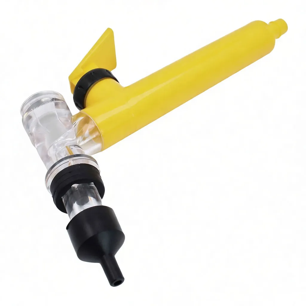 Safe, controlled acid dispensing tool for dry charge batteries. Prevents spills, burns, and clothing damage with positive flow control.