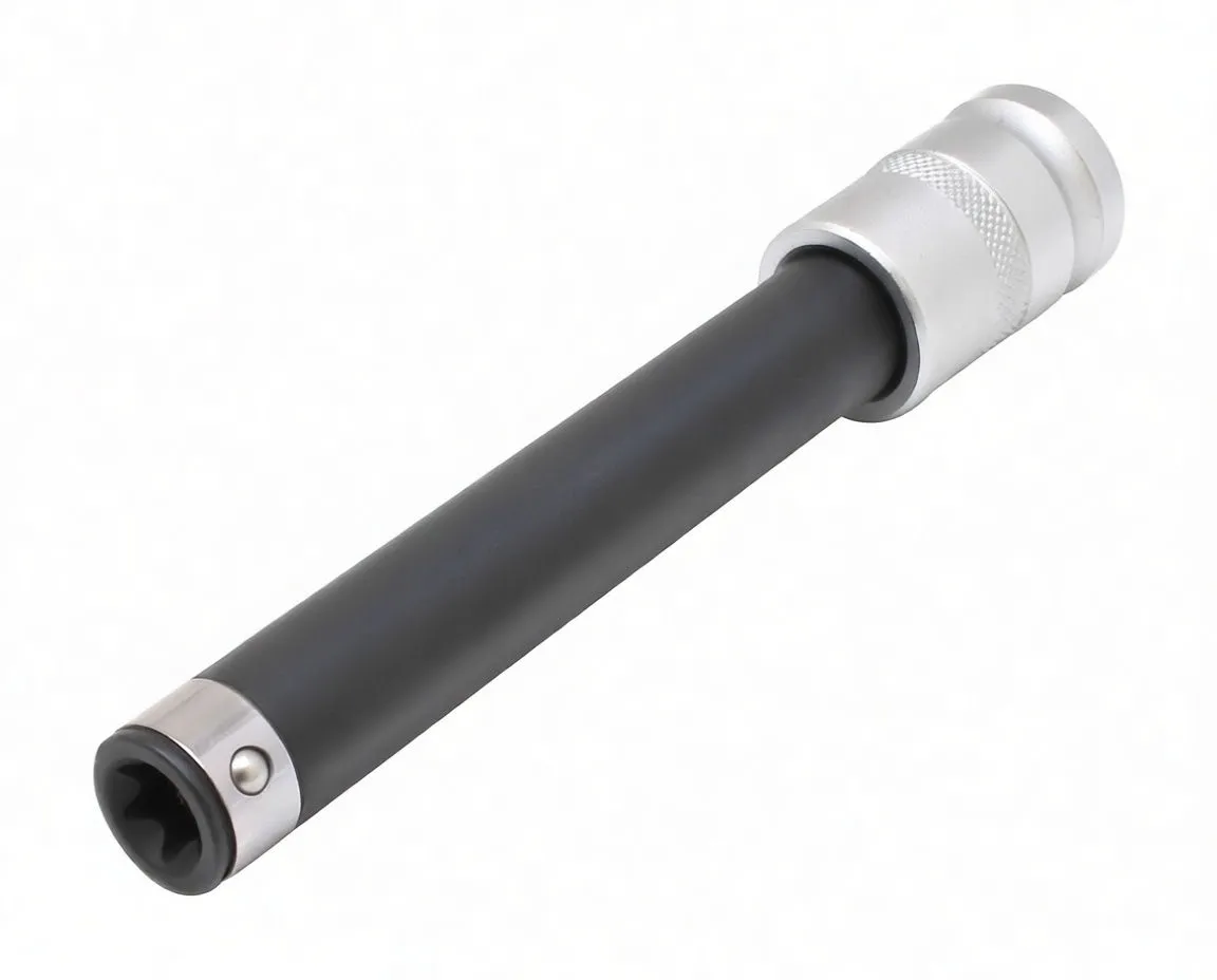 Specialized Torx E12 socket tool for cylinder head bolts with extended reach and anti-slip design, ideal for demanding engine work.