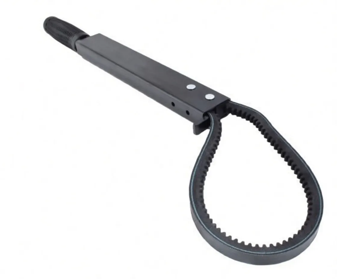 Professional-grade pulley wrench for alternators, water pumps, and large filters. Flexible toothed strap design ensures secure grip on round components.