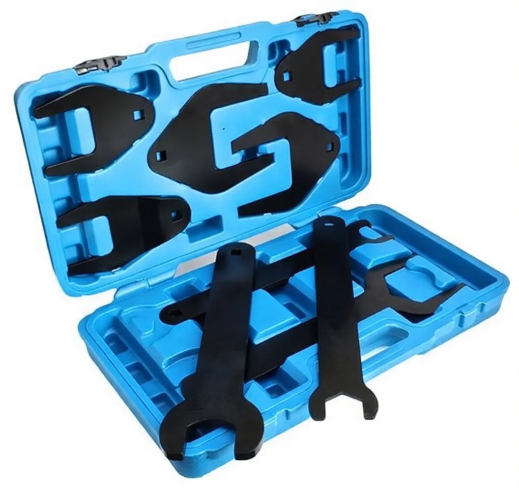 Complete fan clutch removal kit with 10 specialty wrenches and adapters for water pump, timing chain, and clutch service work.