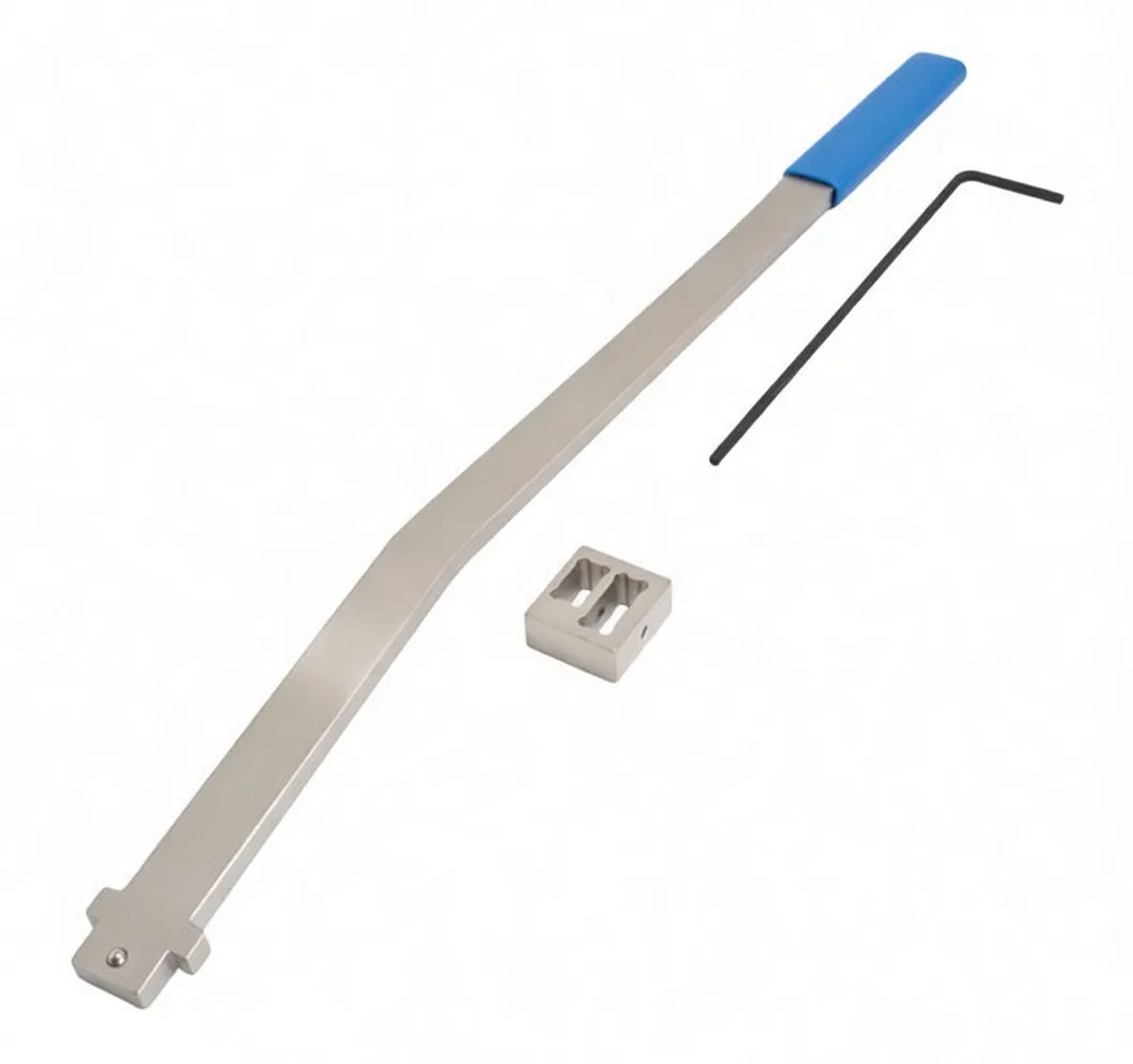 Precision aluminum tensioning tool for accurate tooth belt adjustment in engine service applications.