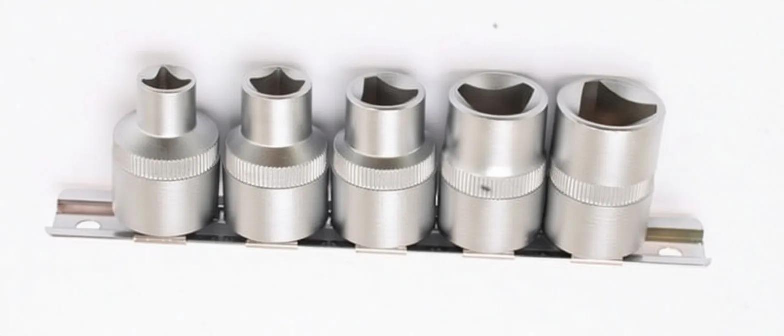 1/2-Inch Drive Triangular Sockets, M5-M12, 5-Piece Set on Rail