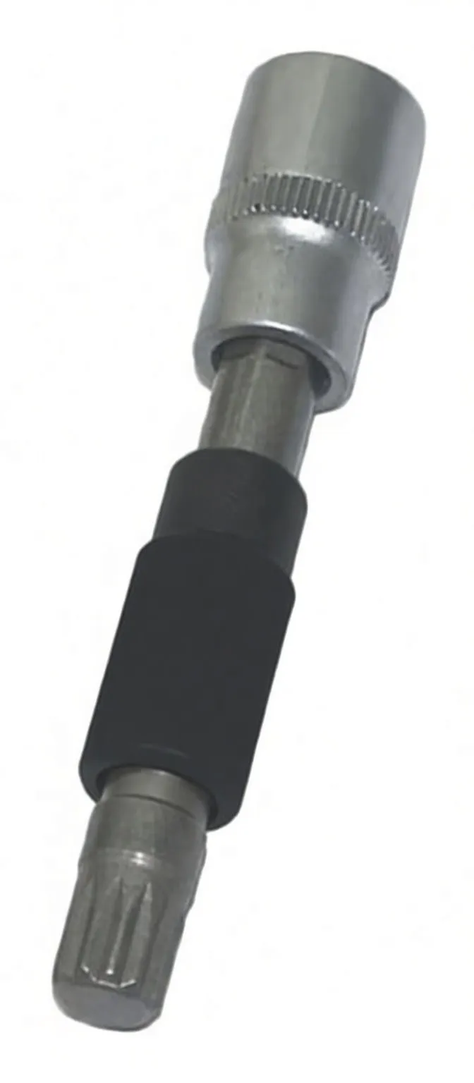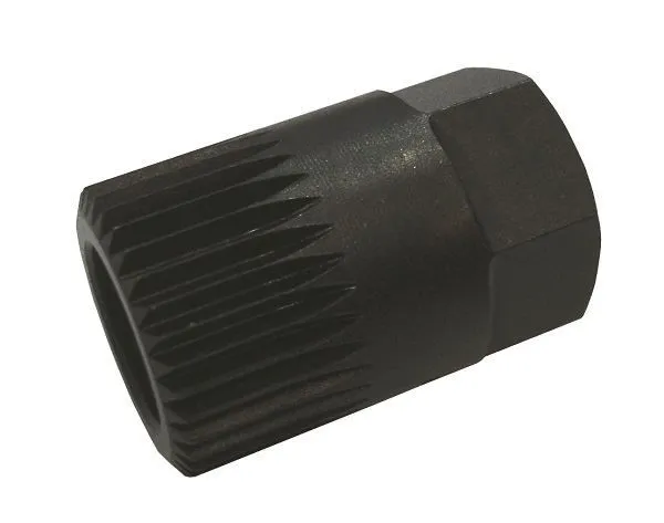 Specialized splined socket for safe alternator pulley removal on VW and Audi vehicles. 17mm hex drive, heavy-duty steel construction.