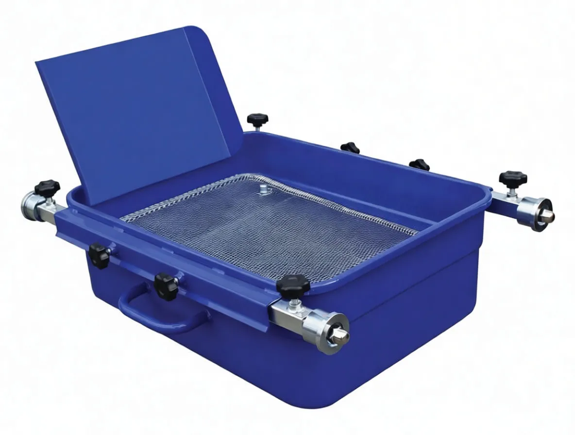Industrial-grade oil catch container with removable steel bath, designed for efficient fluid collection and workshop cleanliness.