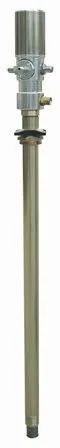 Heavy-duty manual piston pump with telescoping suction tube for transferring oil, antifreeze, and industrial fluids. Stainless steel construction for reliable barrel dispensing.
