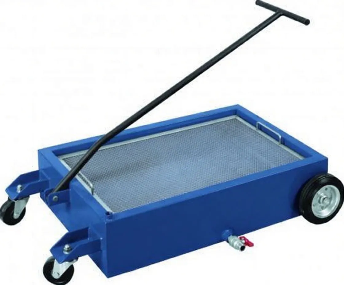 65-Liter Drain Pan for Vehicle Lifts, Gravity Feed/Discharge with Mesh Filter