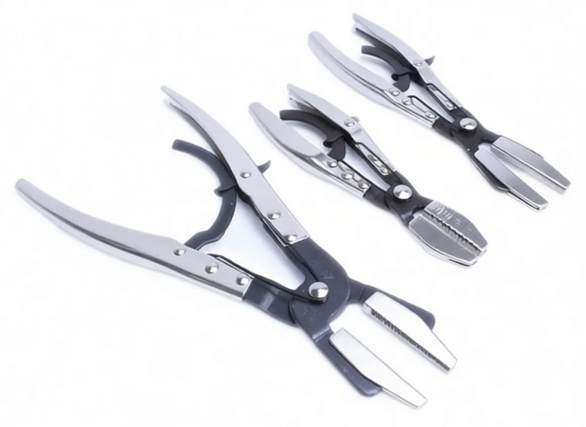 Professional hose clamping pliers with smooth rounded jaws designed to grip rubber lines without damage. Essential for cooling system maintenance.