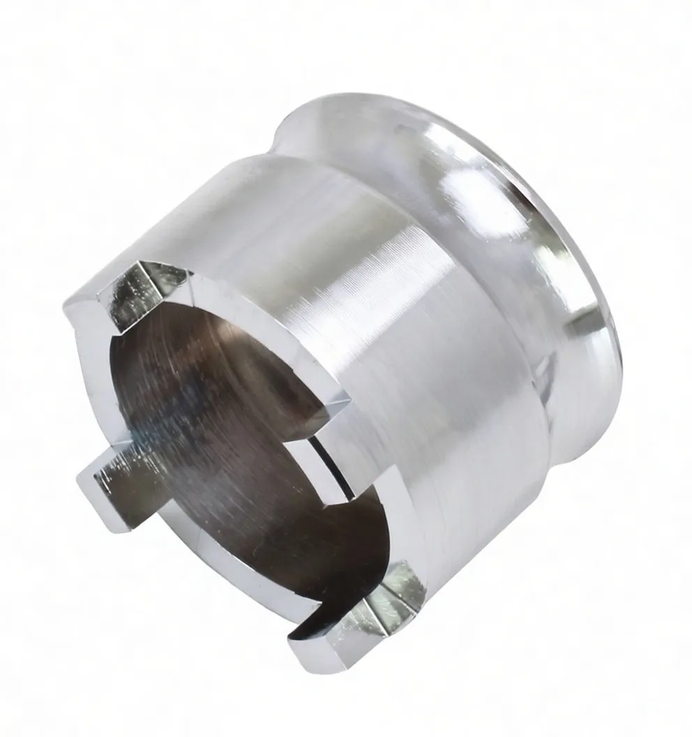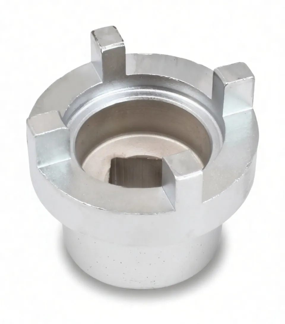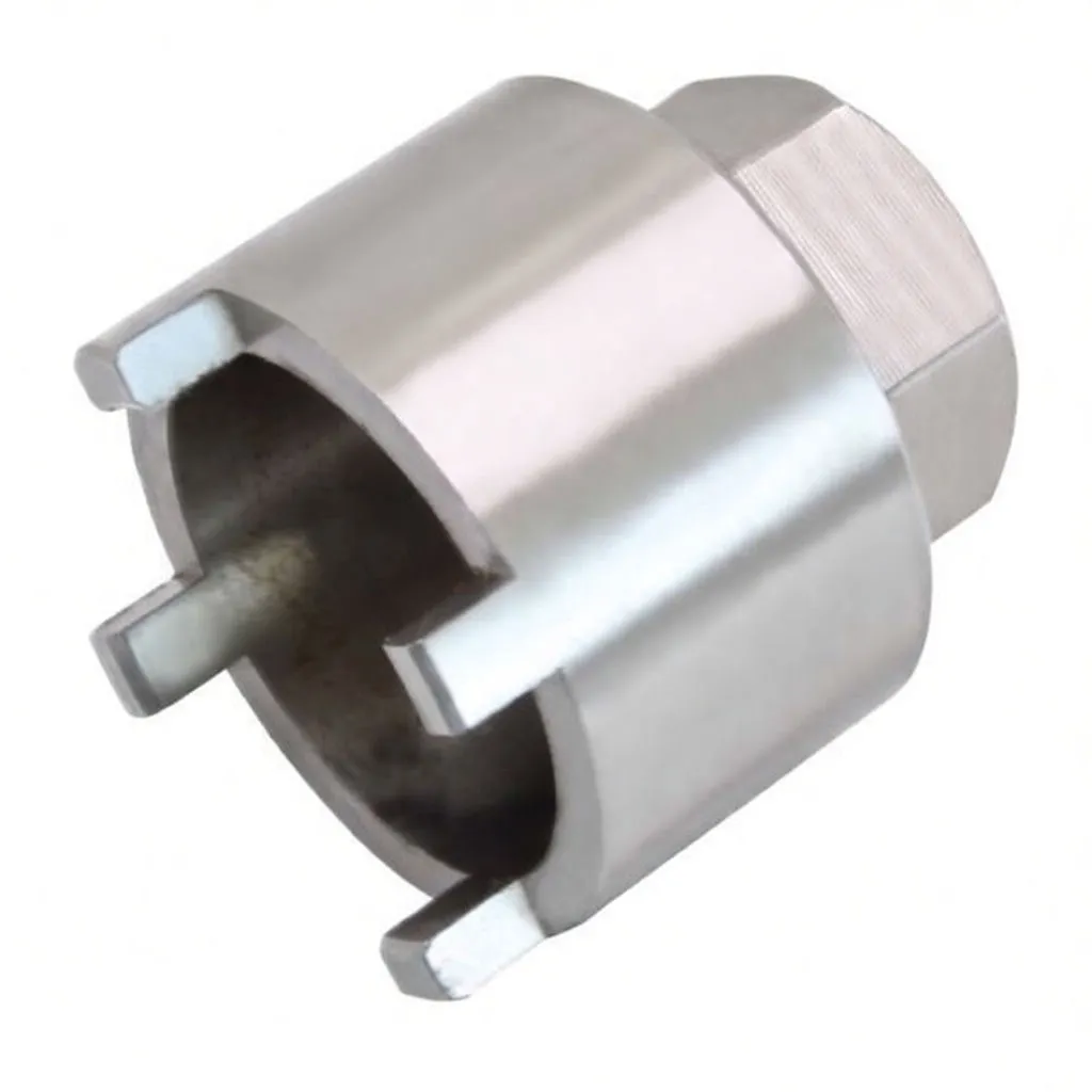 Precision-engineered socket tool for secure swing arm nut removal on motorcycles and ATVs. Four engagement lugs prevent slipping.