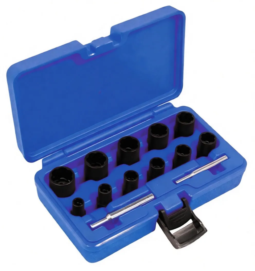 Spiral Teeth Bolt Extractor Set, 9-19mm, 3/8-Inch Drive with Storage Case