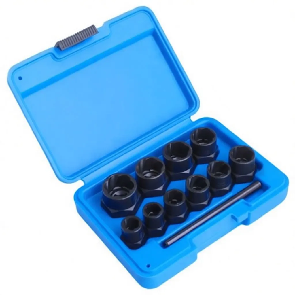 Professional-grade bolt extractor set with spiral cutting teeth for removing rounded, stripped, or damaged bolts and fasteners.