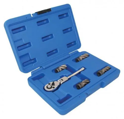 Restore damaged spark plug threads with precision HSS tap and four variable-depth inserts for reliable cylinder head repairs.