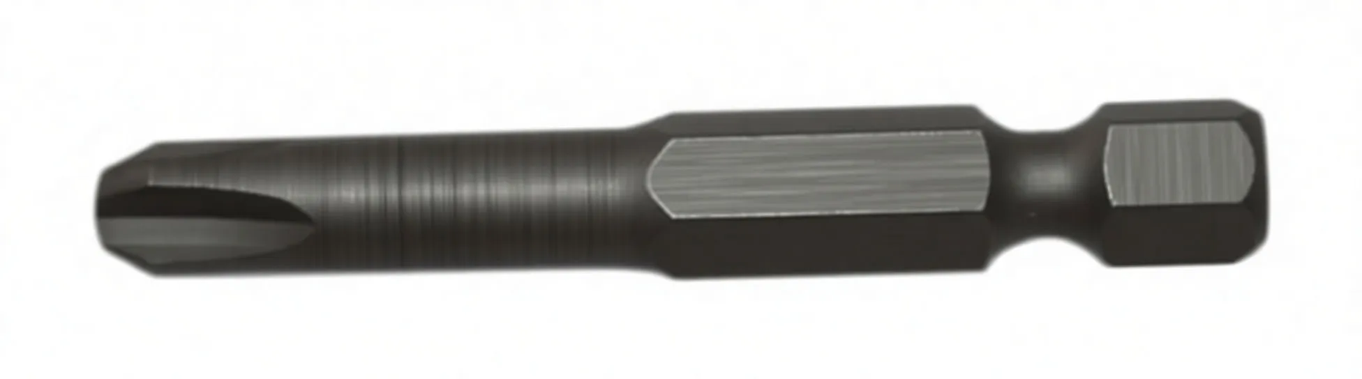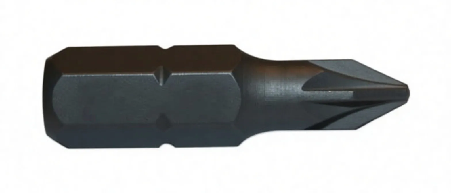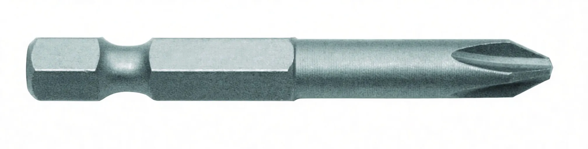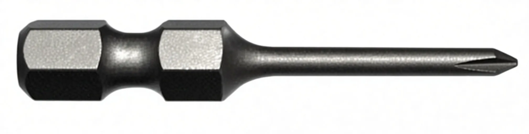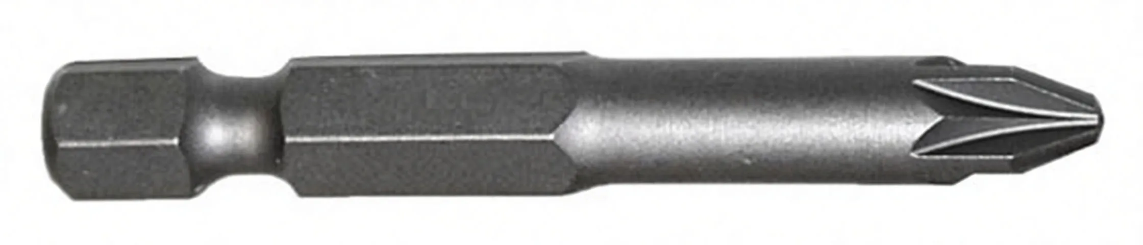Compact impact-rated Phillips bit with torsion zone for controlled energy absorption in tight spaces and precision fastening.