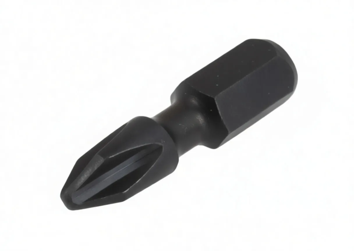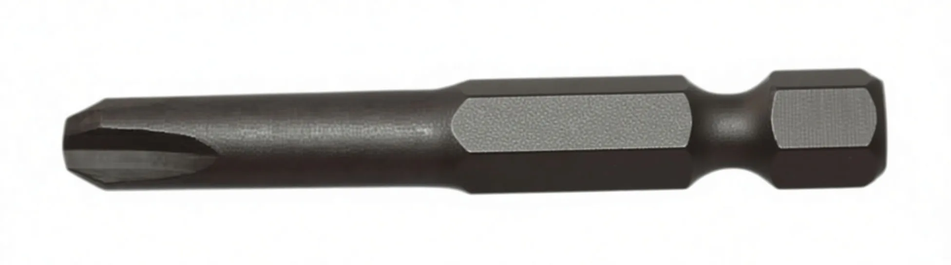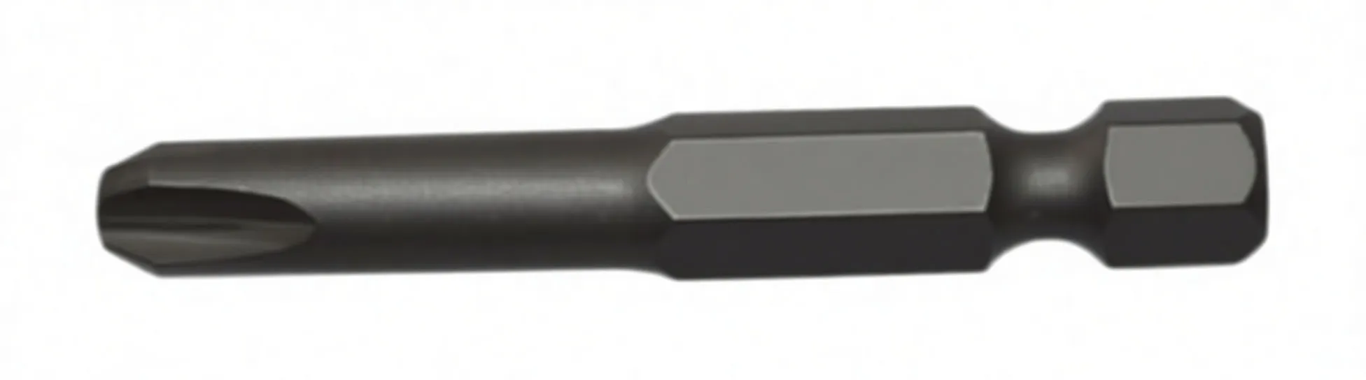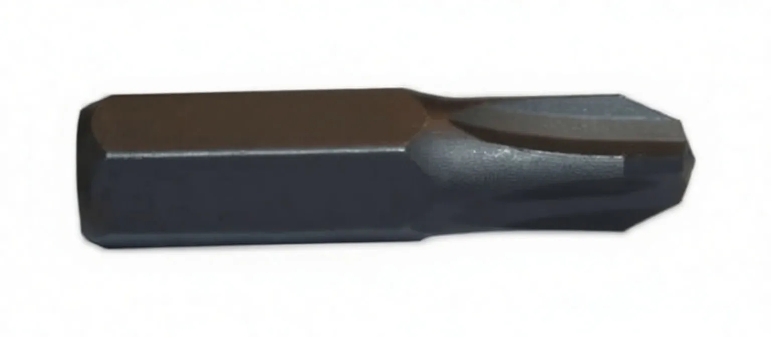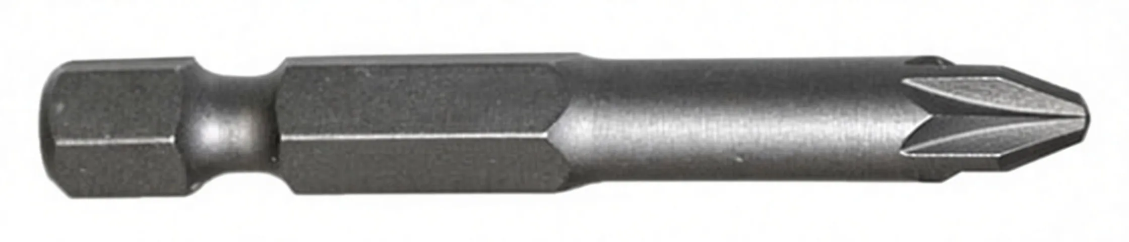 Compact impact-rated Phillips bit with torsion zone for controlled energy absorption in tight spaces and precision fastening.