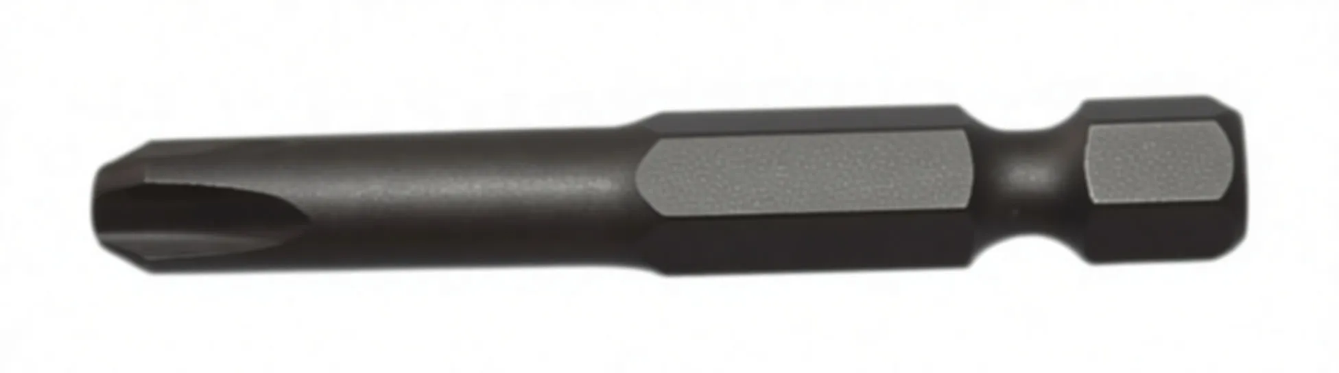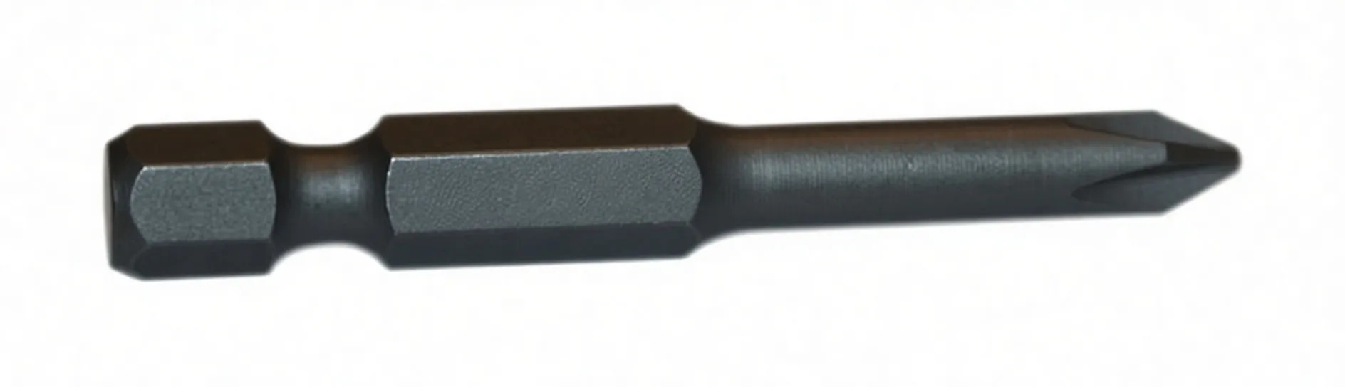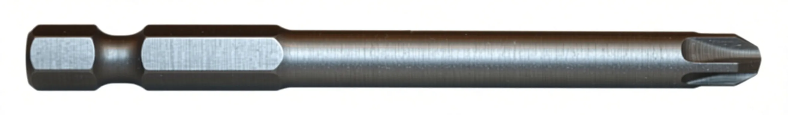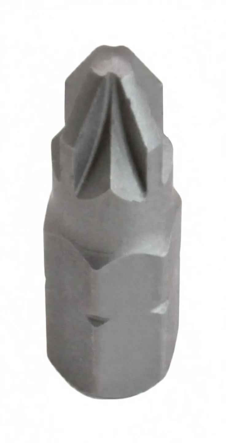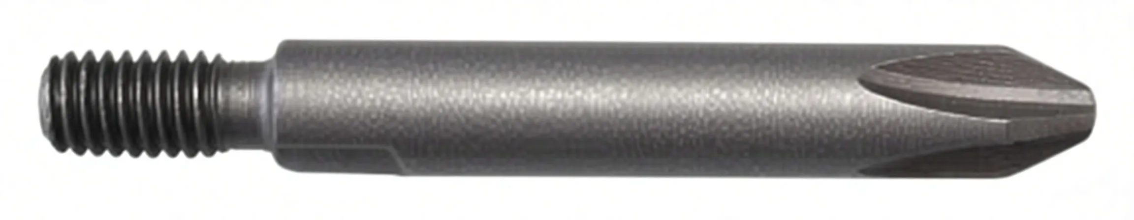 Compact impact-rated Phillips bit with torsion zone for controlled energy absorption in tight spaces and precision fastening.