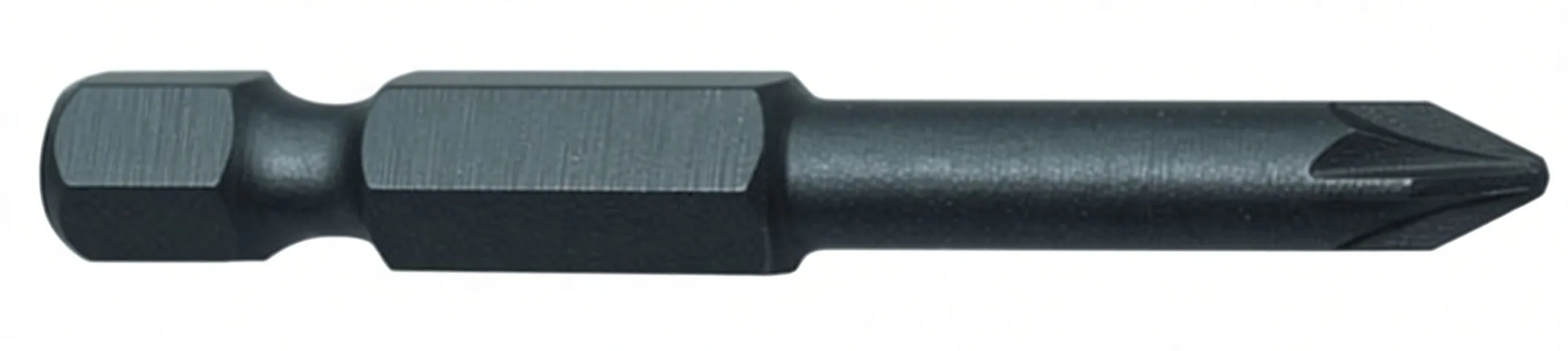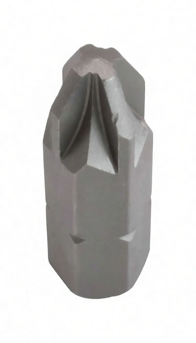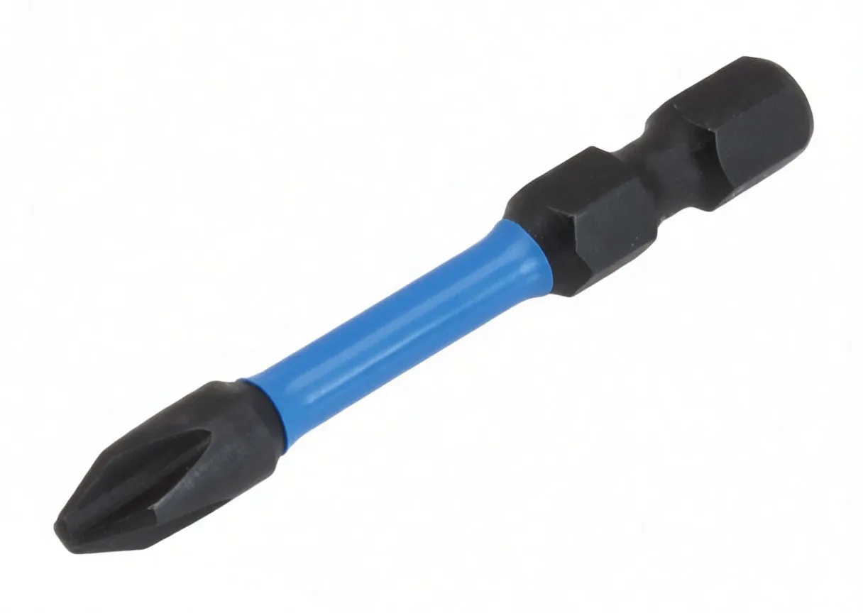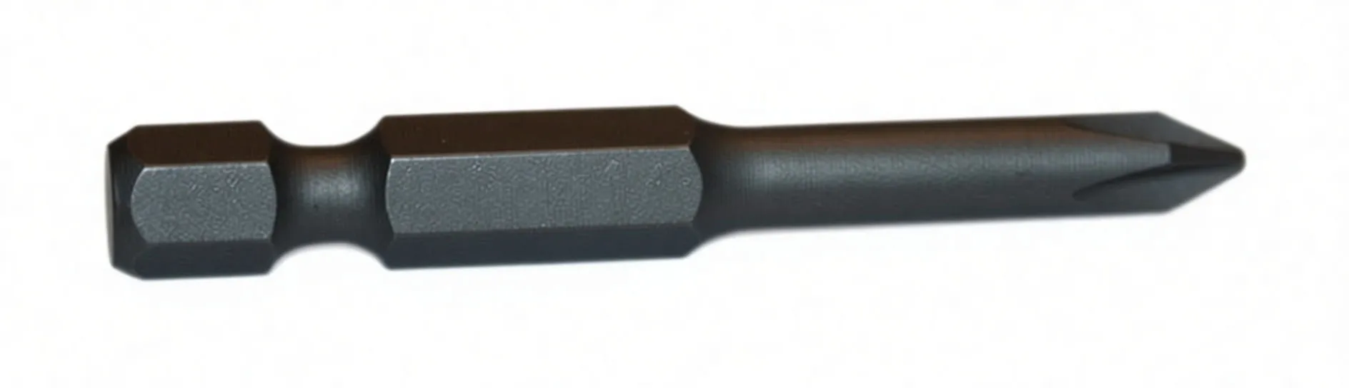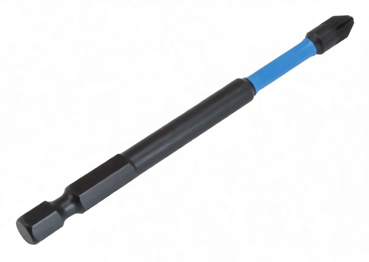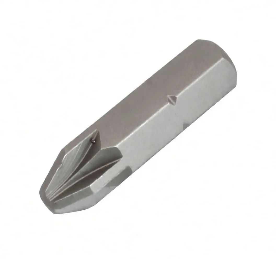 Compact impact-rated Phillips bit with torsion zone for controlled energy absorption in tight spaces and precision fastening.