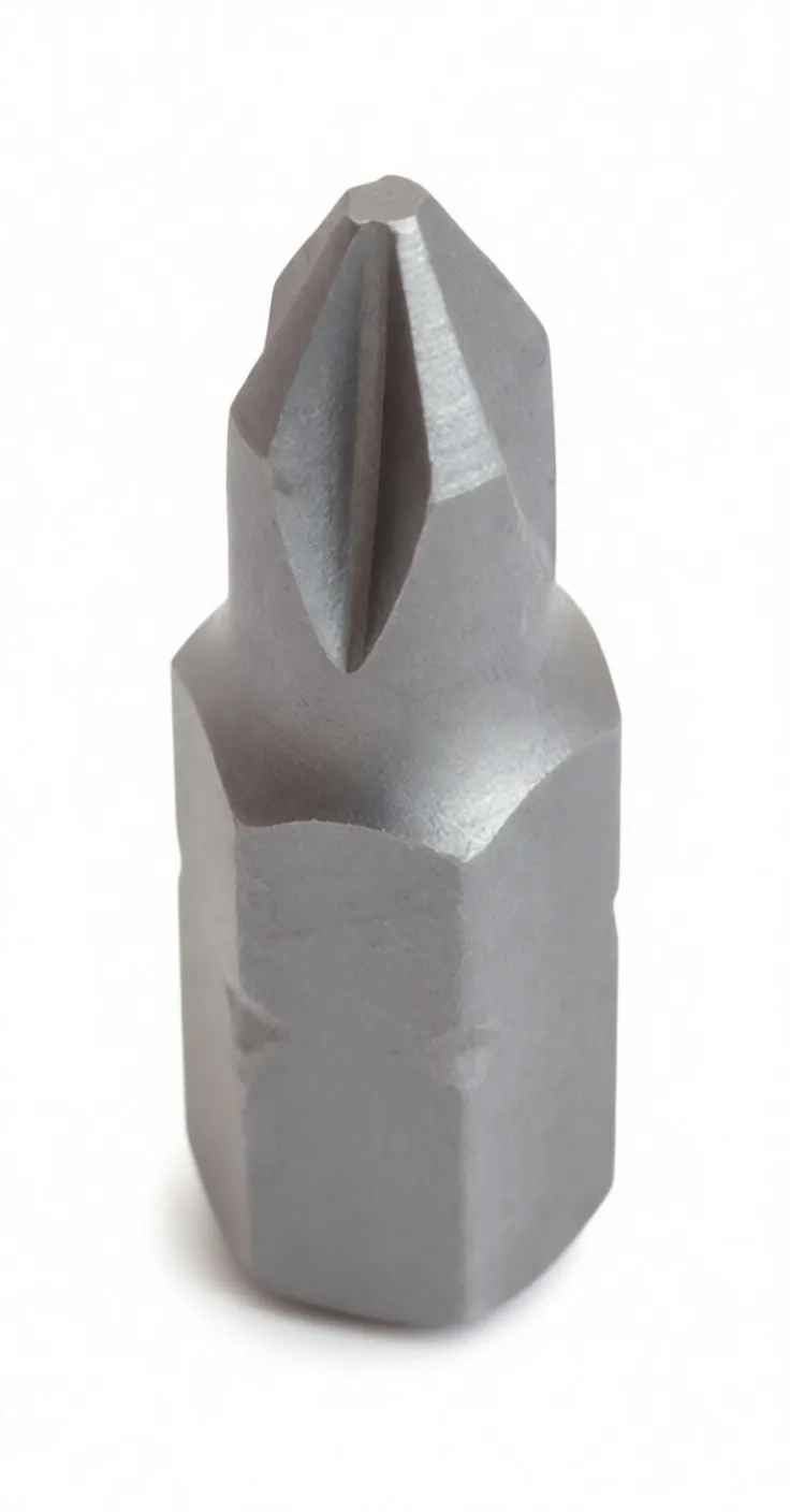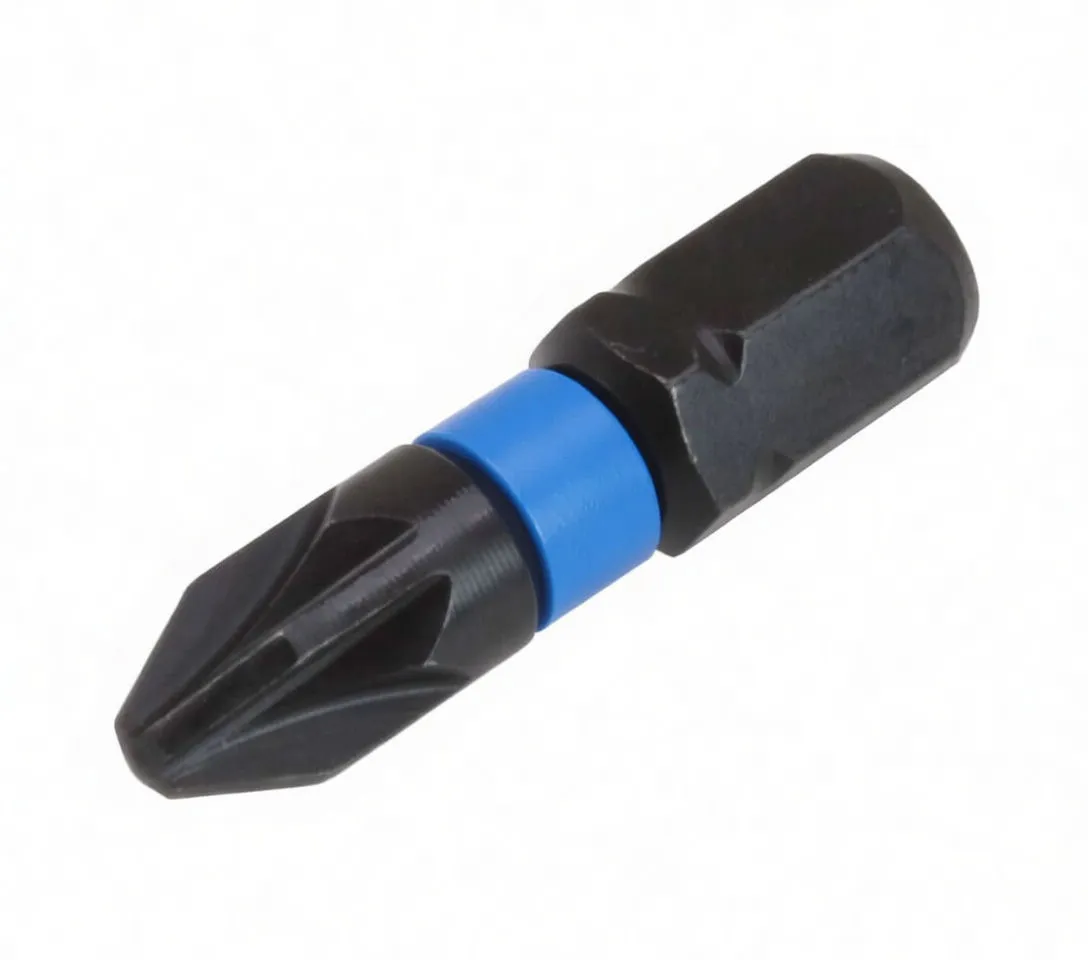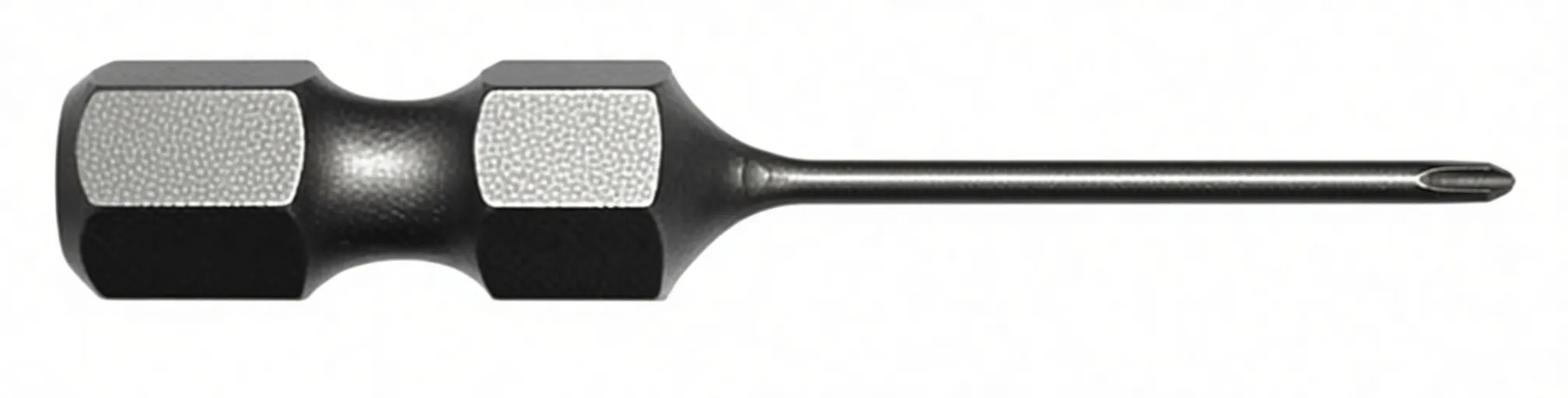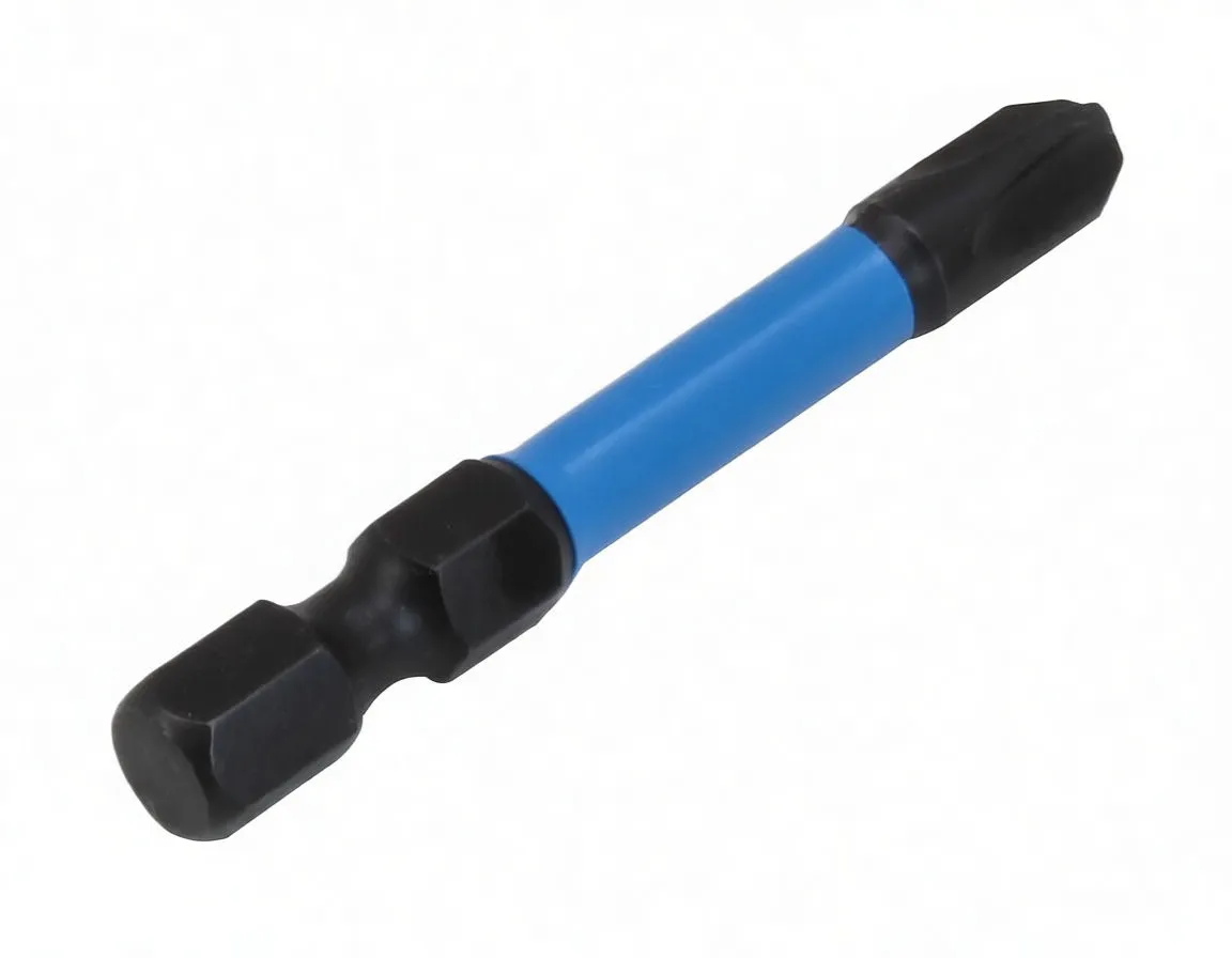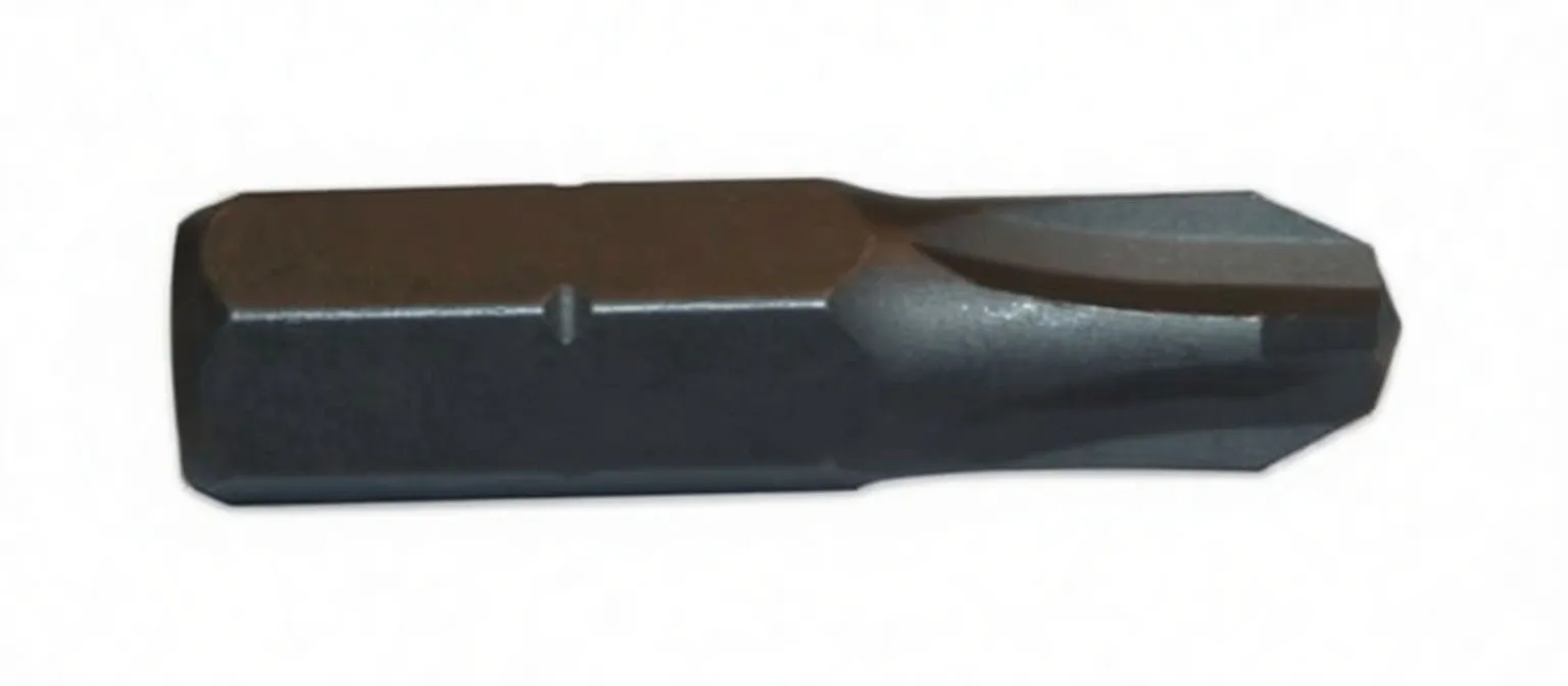 Compact impact-rated Phillips bit with torsion zone for controlled energy absorption in tight spaces and precision fastening.