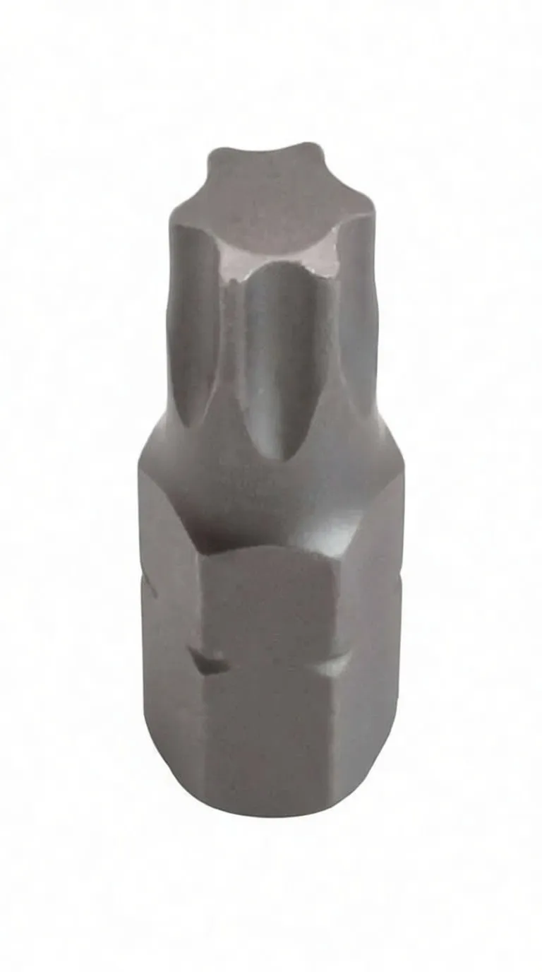 Professional-grade Torx T25 bit with 10mm hex socket body. Essential for precision fastening in electronics assembly and automotive work.