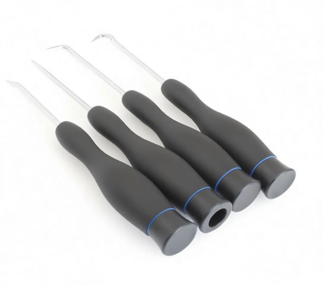 Professional gasket and O-ring removal tools with precision chrome tips and durable grip handles for automotive and mechanical work.