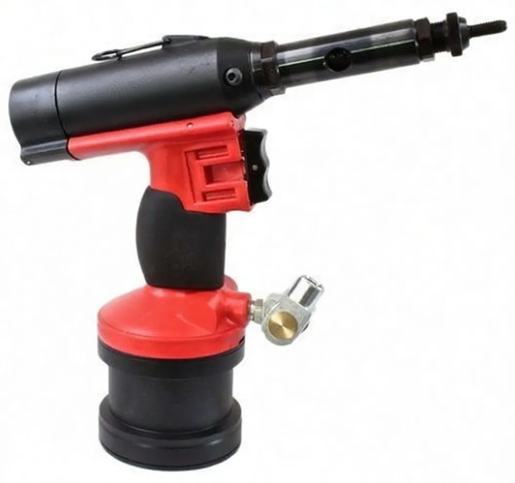 Professional pneumatic nut riveter with 3100 kg striking power for M4–M12 fasteners. Ideal for high-volume assembly operations.