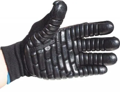 Heavy-duty anti-vibration gloves with segmented rubber padding for reduced hand fatigue in high-impact work environments.