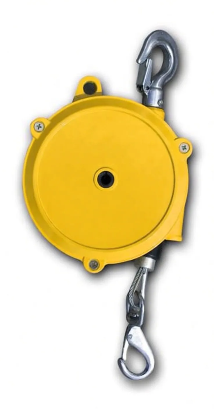 Precision spring balancer for assembly and hanging tasks. Supports 1.5–3.0 kg loads with smooth retraction and secure swivel hook attachment.