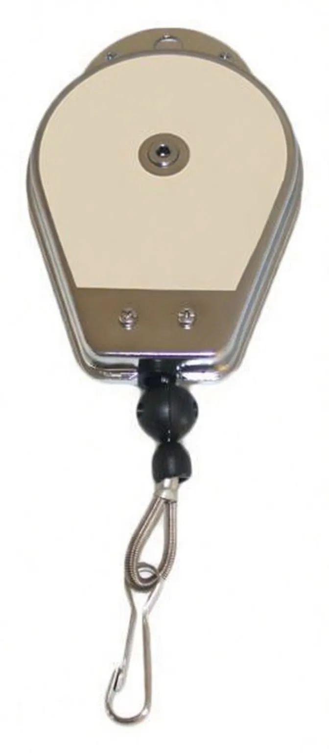 Lightweight spring balancer with 1.7m retractable cable and snap hook, ideal for precision assembly and detail work in confined spaces.