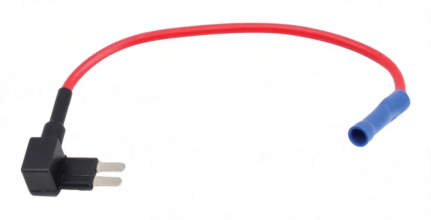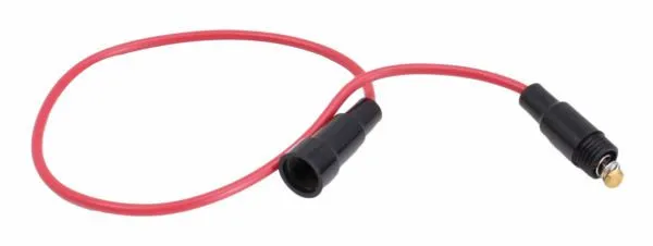 Single-position micro fuse holder with 14.5cm pre-terminated wire and crimp connector for 32V circuits up to 30A.