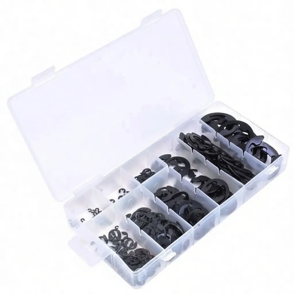 E-Clips Assortment Set – Black Metal Retaining Rings, 1.5mm to 22mm, 310 Pieces