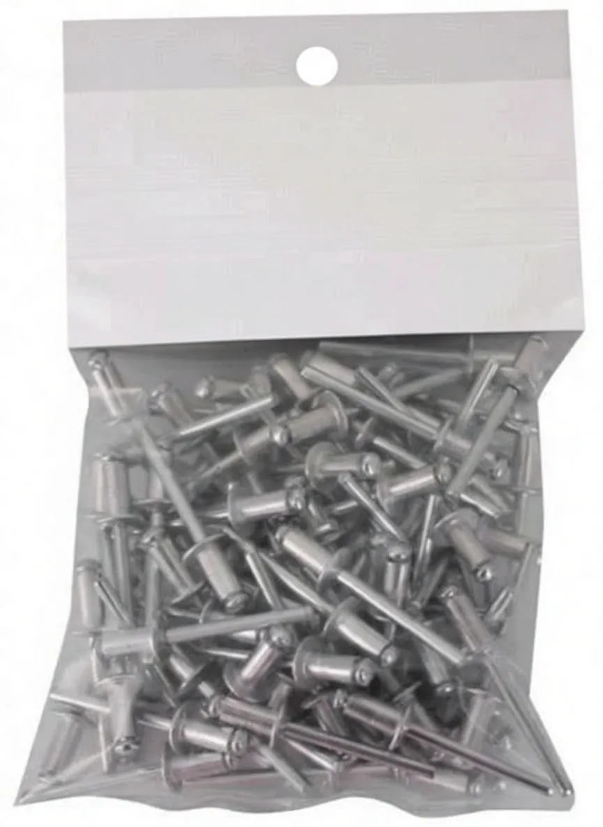 Professional-grade aluminum blind rivets for sheet metal and composite fastening. 100-piece pack ready for retail or bulk distribution.