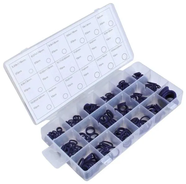 Professional automotive O-ring assortment with 17 metric sizes and 410 pieces in convenient organizer box.