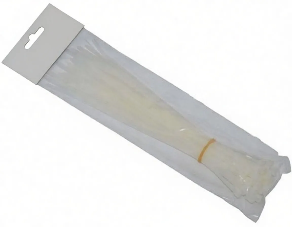 Professional-grade white nylon cable ties for reliable bundling and organization in industrial, automotive, and electrical applications.