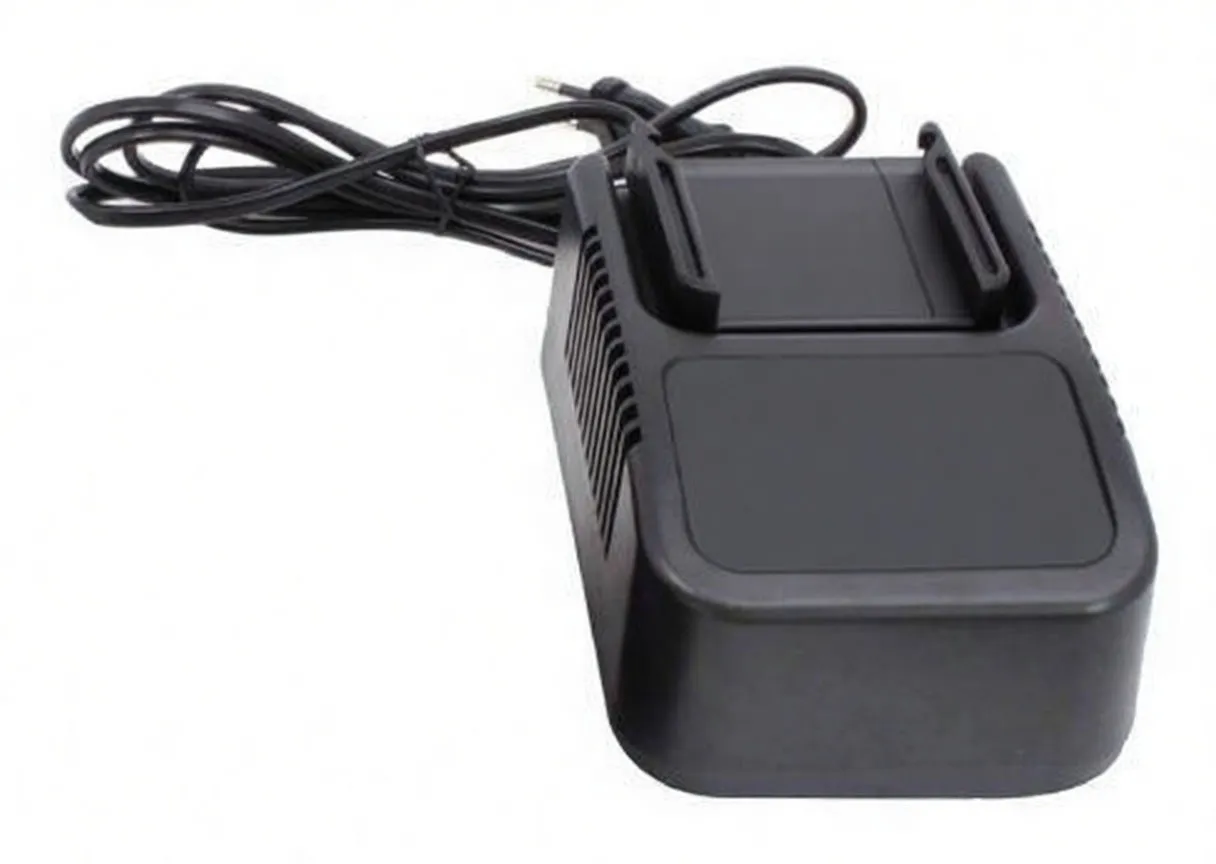 Compact desktop charger for lithium-ion battery packs with real-time status monitoring and integrated safety diagnostics.