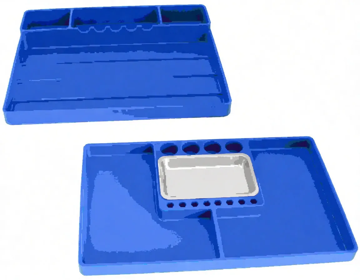 Magnetic Tool Tray, Blue ABS Plastic, Size 6 with Rubberized Magnetic Pad