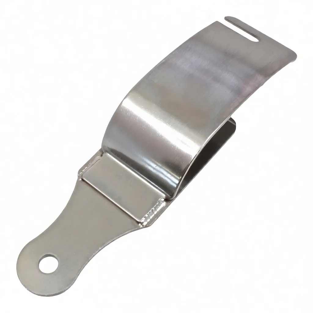 Professional stainless-steel tire removal tool with curved blade and spring mechanism for off-road tire servicing.