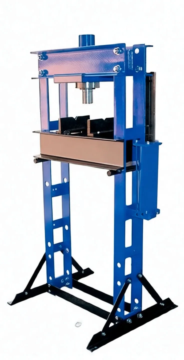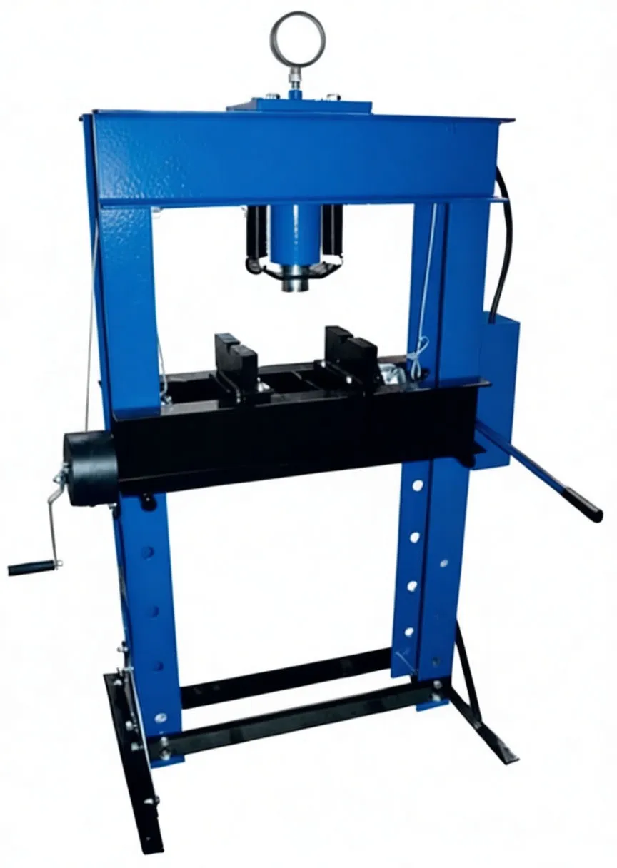 50-Tonne Hydraulic and Pneumatic Floor Press with Dual-Speed Pump and V-Block Fixtures