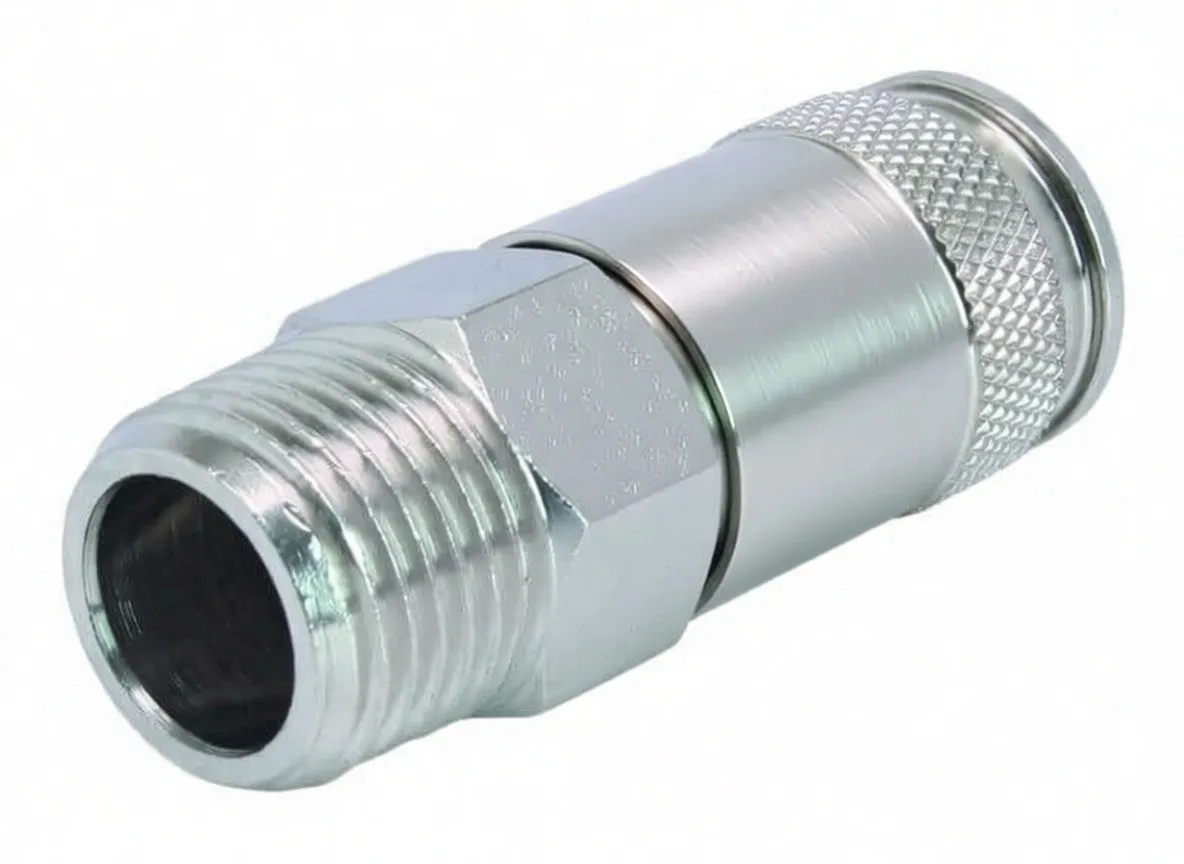 Professional-grade pneumatic quick-connect coupling with 3/8-inch male thread and spring-retained design for reliable compressed air systems.