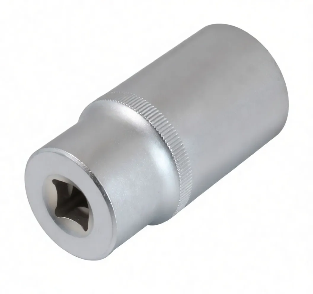 Professional 6-point short hand sockets in E10–E20 sizes for precision fastening work. Knurled grip, chrome finish, ideal for high-volume resale.