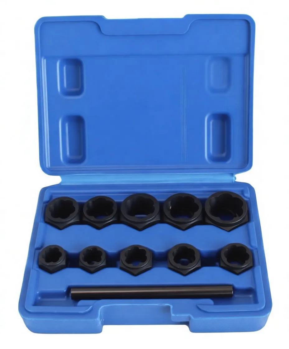 This 10-piece set combines left-cutting drill bits and helical-groove extractors to tackle one of the most common shop problems: removing broken bolts, studs, and damaged fasteners. Pair this with larger formats like our heavy-duty bolt extractor socket sets for comprehensive shop coverage across all fastener sizes.