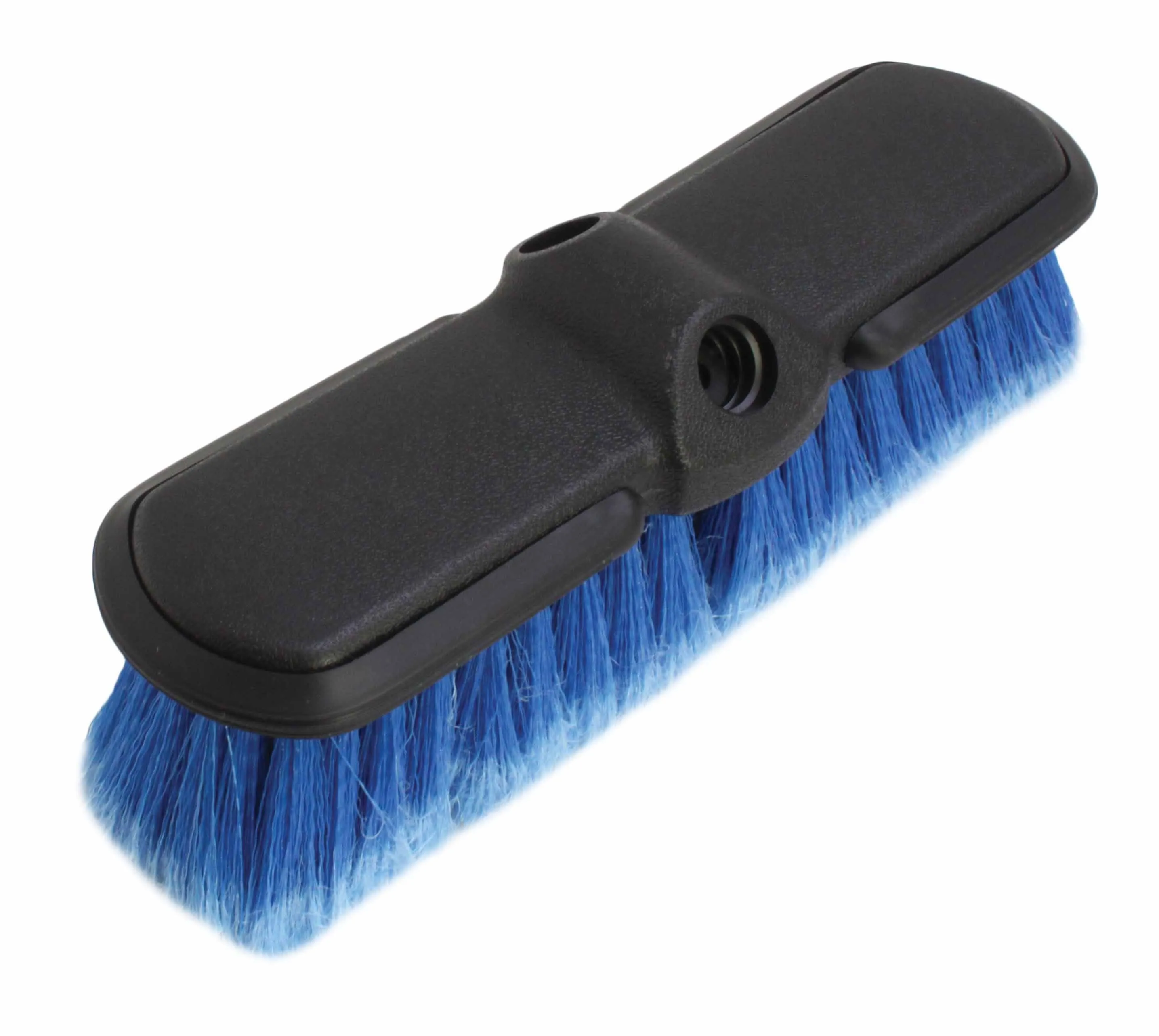 Professional telescoping wash brush with interchangeable heads, water-flow control, and adjustable length up to 145 cm for fleet and facility cleaning.