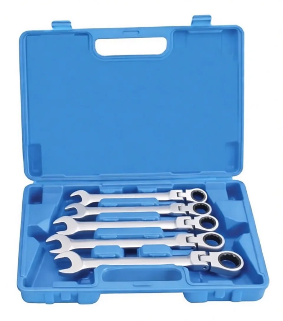 This 6-piece flex head ratchet wrench set delivers precision and accessibility for professional mechanics and technicians working in confined spaces. The combination of three pivoting ratchets (1/4", 3/8", 1/2" drive) paired with matched extension bars provides the reach and maneuverability required for automotive, motorcycle, and small appliance repairs. Whether you're stocking a general service bay or offering a complete compact toolkit to your customers, this set addresses the universal demand for space-saving socket solutions. Complement this set with adjustable hook wrenches for additional grip options or upgrade to flexible gear wrenches for metric fasteners.