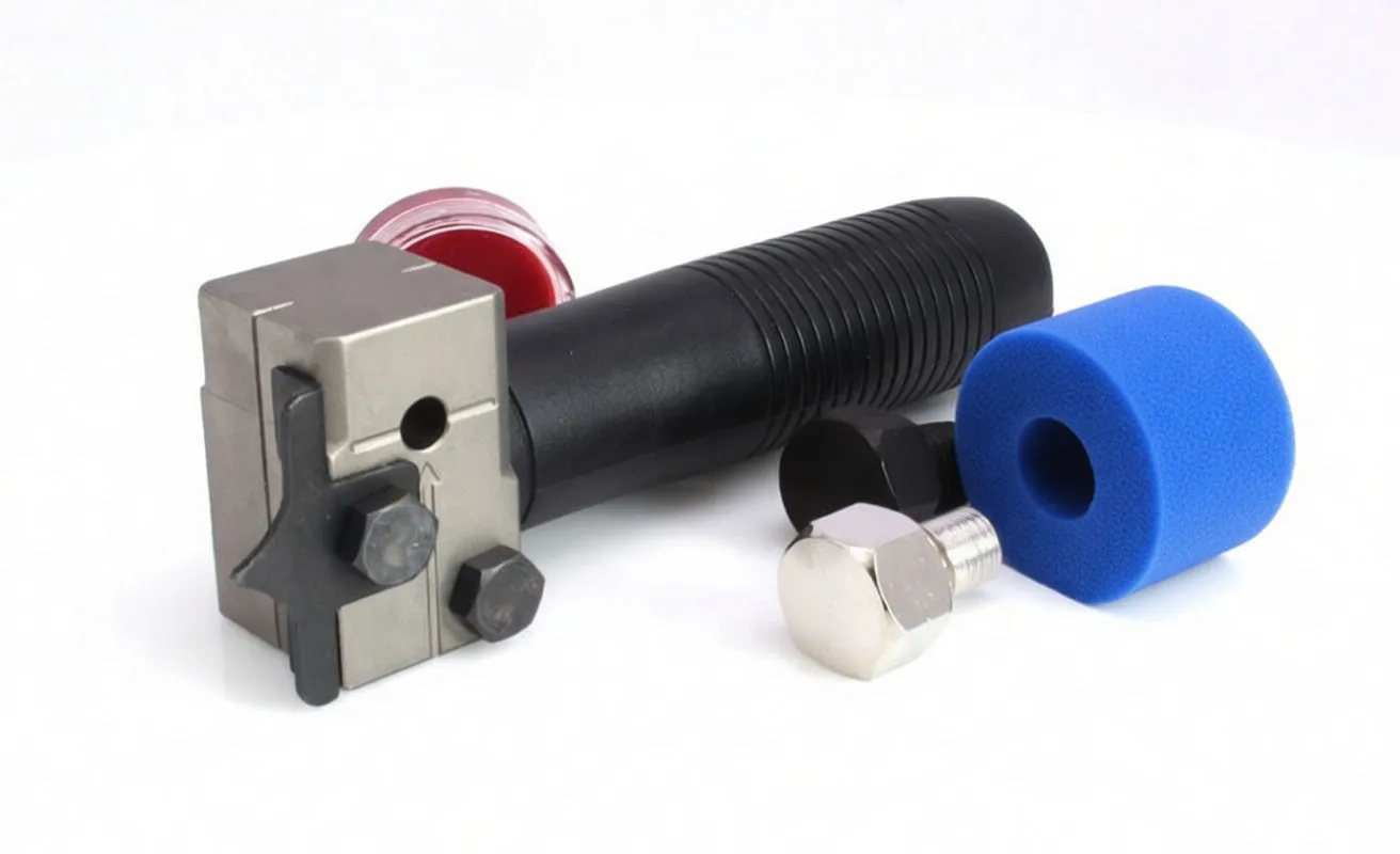 - Tubing Cutter: Red-handled rotary cutter with adjustable knob, cuts cleanly through tubing from 3 to 30mm diameter