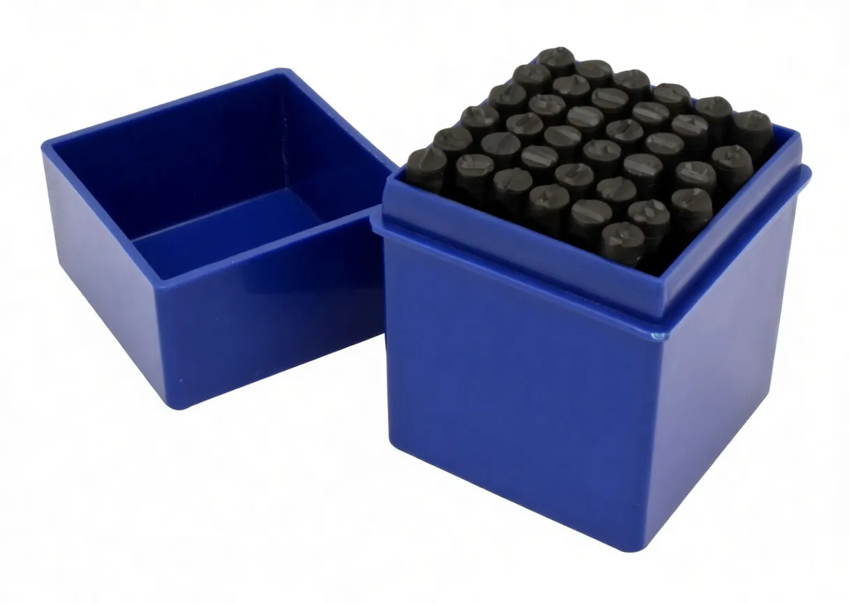 This 38-piece automatic punch set delivers reliable, consistent marking on aluminum composites, sheet metal, wood, leather, copper, and fiber. The spring-loaded brass center punch with adjustable impact force eliminates guesswork—each strike produces clean, professional characters. Whether you're stamping serial numbers on finished goods or marking materials for assembly, this set covers the essentials with a complete character range (0–9, A–Z, plus ampersand and center punch). For shops needing smaller character heights, consider pairing this with smaller 5mm or 6mm character punch sets for precision applications.