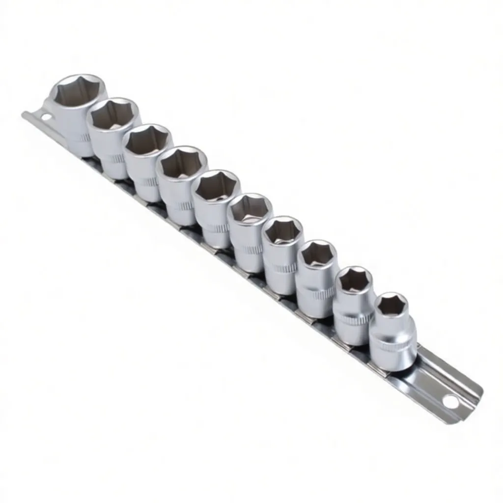 This chrome-plated rail and clip system provides a professional-grade solution for organizing and storing 3/8-inch tools and accessories on workshop walls. Each set includes two metal rails with integrated clip holders and mounting hardware, offering reliable tool visibility and accessibility. Whether you're outfitting a service bay, toolroom, or retail display, this system delivers organized storage that improves workflow and reduces tool search time. Complement this setup with smaller 1/4-inch rail clips for mixed-size tool organization, or pair it with 3/8-inch socket sets mounted on rails to create a complete socket display system.